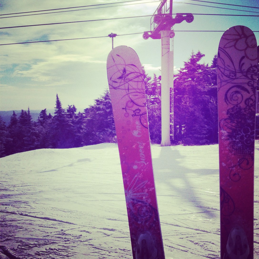 I say this even though I was too shy to join into the SheJumps event at Stowe last year. I was there at the mountain. I was the chick in the red coat and pink goggles standing off to one side before ducking my head and scurrying into the singles line before any of the bold women in pink tutus and powder skis could noticed me. (I’m working on it.)